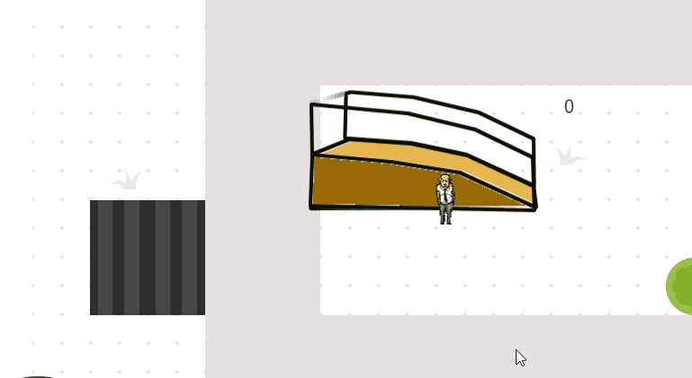 The Player should be able to walk up the ramp. When they cross the edge of the upper part of the ramp, they should look like they’re falling back to the ground. So I would like to create the impression that they are falling from a higher position to a lower one. And they should also still be able to walk in front and behind the ramp