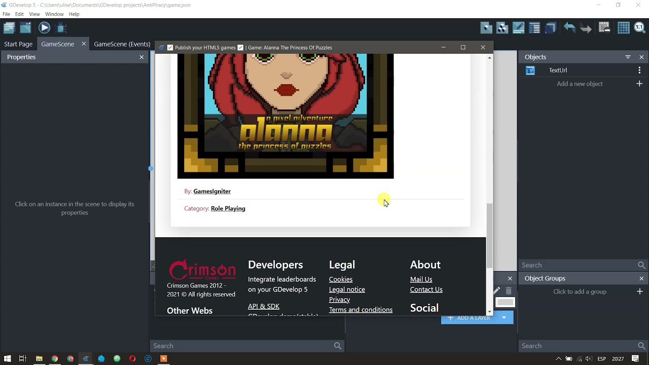 You can get the current URL via the url tools extension and switch to an anti piracy scene if it is not one you uploaded the game to.