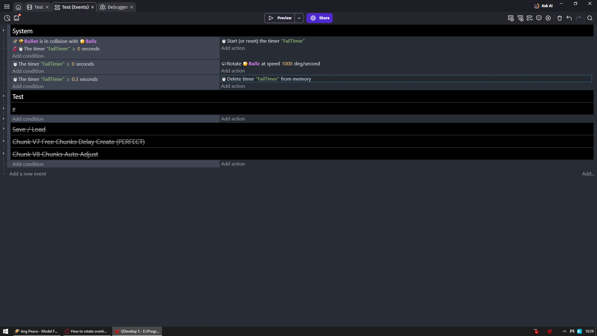 i am trying to make a boss rotate when it is hit, but i tried using tweening and ended up breaking, so i resorted back to simple code