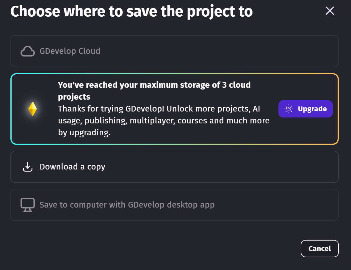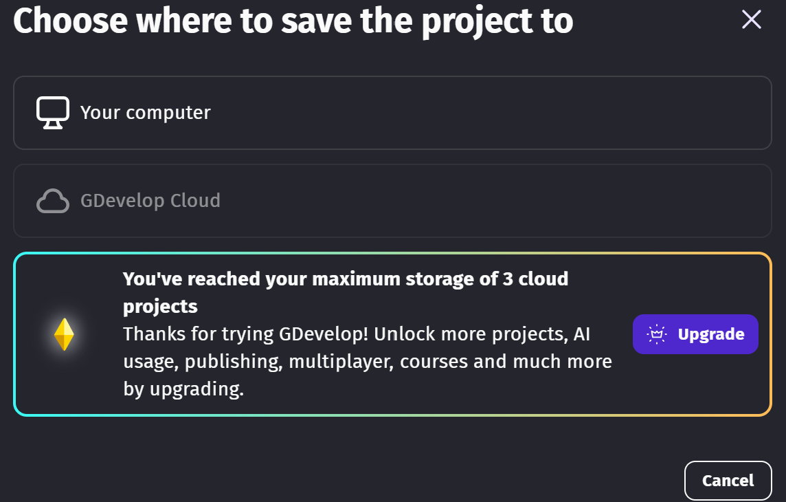 Especially useful if you’re using another device temporarily, as all you have to do is connect the cloud service, and you have access to all your game projects.
