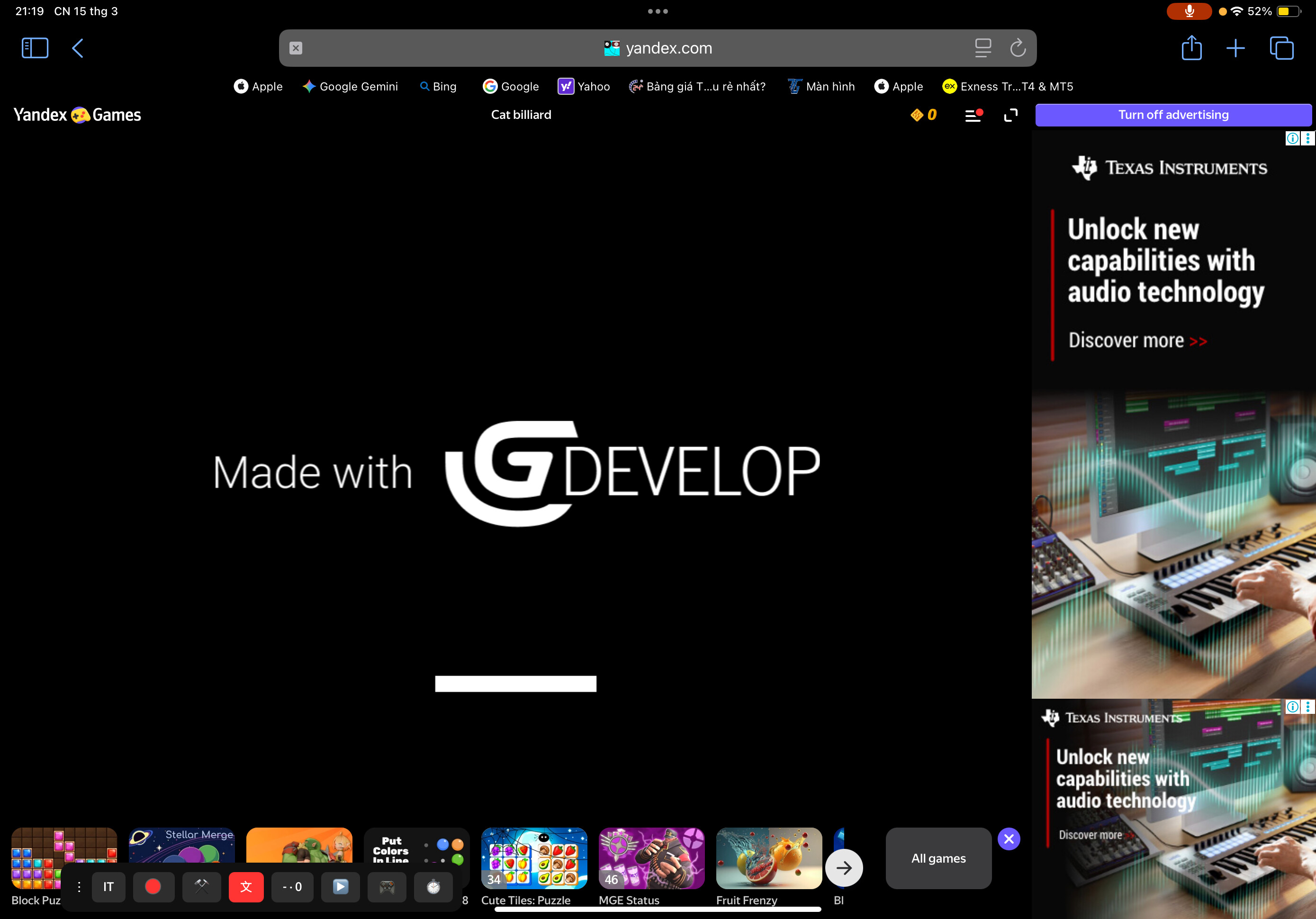 I made a billiards game in 2 days! It contains a bot, music, glasses, photos from a Yandex account, an explosion of photos in the menu, a download of Yandex SDK, a trajectory where the ball will fly, a display of points, its own unique transition system and the character of the bot and the player who change the animation depending on who won!