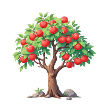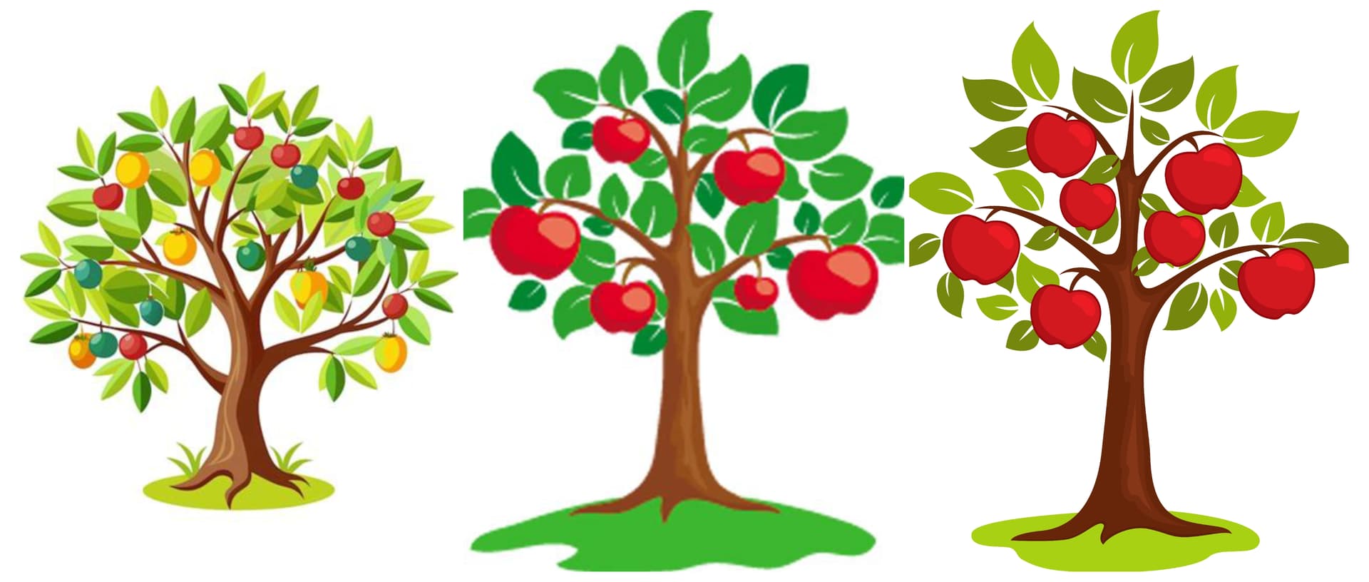 Less is more sometimes: Try only 3-5 units of type of fruit (maybe only one color for a tree). Tree1 has three to five red apples, tree2 has yellow apples, tree3 has green apples and so on…