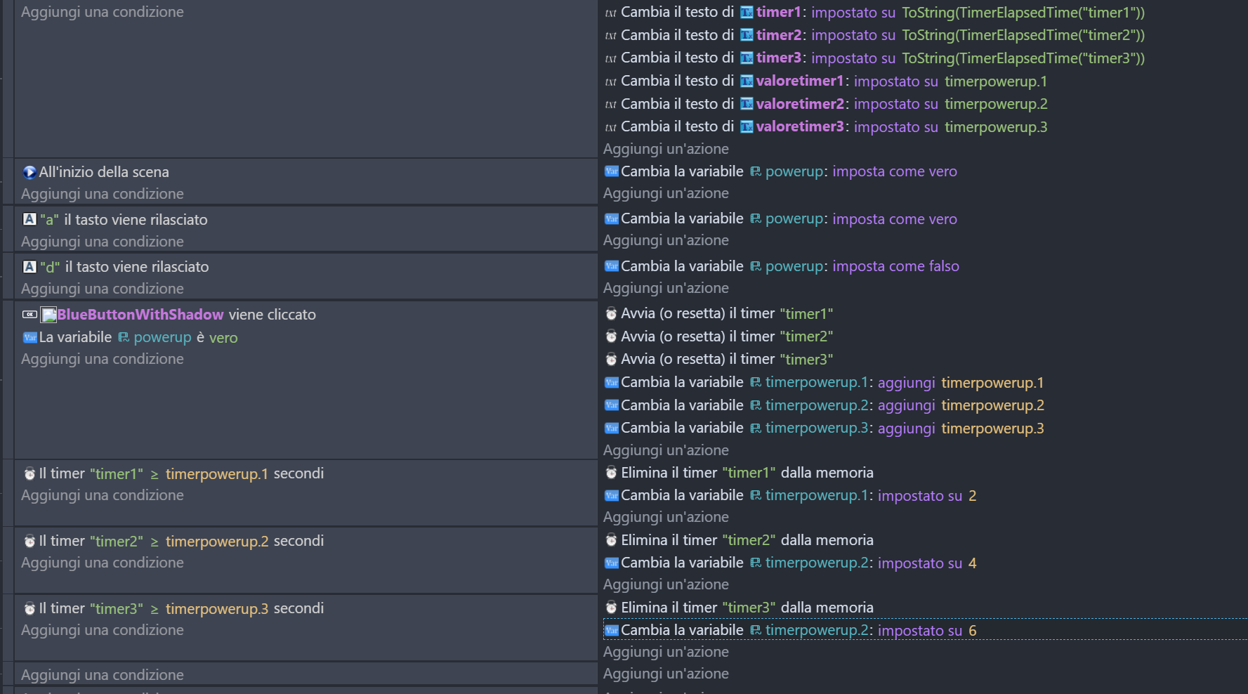 I’m coming back to this post again… what if the power up boolean variable becomes false or the timers have been deleted and I want to return them to their original values? Do I always have to reset them manually?