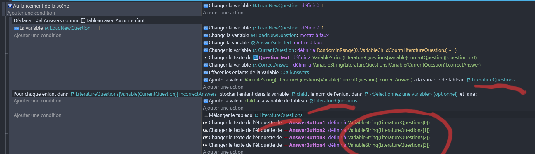 LiteratureQuestions and assign the first 4 elements to the buttons.