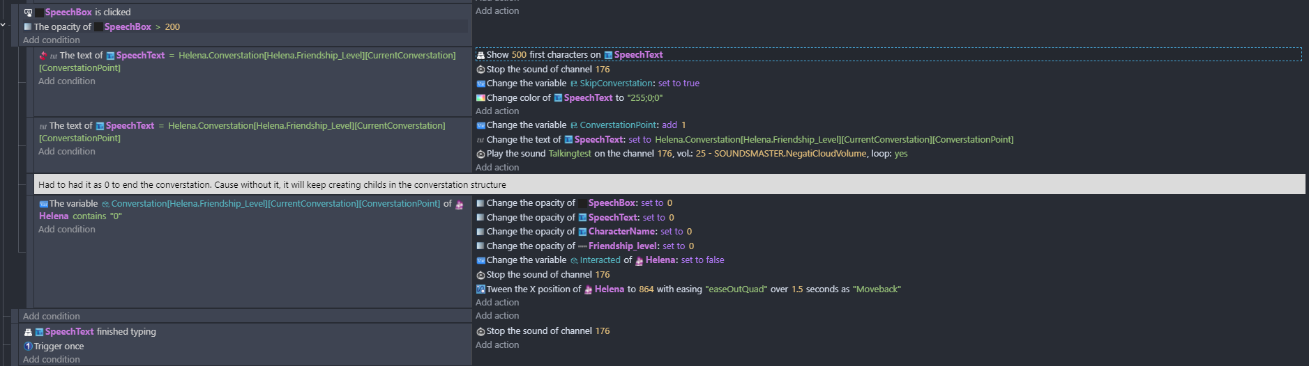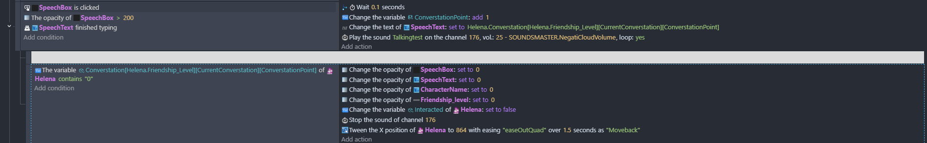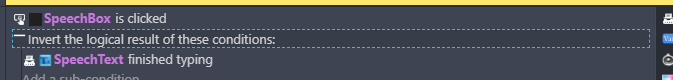 Hi DSM, what if there’s a Trigger once in the SpeechBox clicked condition? What is that SpeechBox by the way where it has a Is clicked condition? Is it from a different extension?