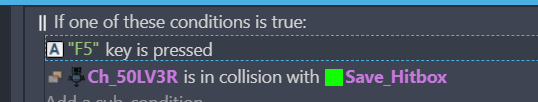 More updates. The F5 key press condition doesn’t seem to work either. Nothing to do with the loading part really it just doesn’t work for some reason. Tried changing it to a different key didn’t work. Tried switching it to key press it didn’t work aswell. Not much of an issue since it’s there for testing but yeah not sure why it doesn’t work at all. It did use to work before i added the “or” condition though.