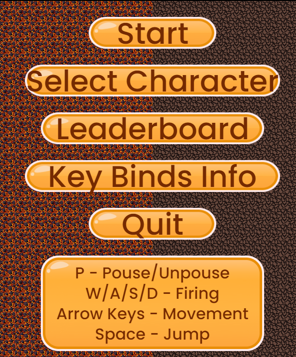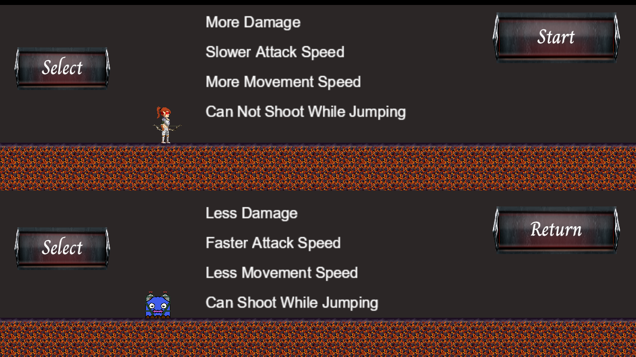 The character select menu felt “misplaced”. The menu feels like it is thrown off to the side, where people won’t often find it. Also is there a difference between the 2 characters? I found that the girl didn’t shoot as well, but also moved faster I think? You should have a description for them letting people know their differences (if any).