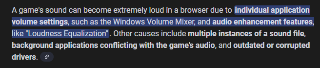 I did a quick google search about sound being too loud in a browser game with the prompt being “what would cause a game sound to be extremely loud on a browser” and the answer I go was this: