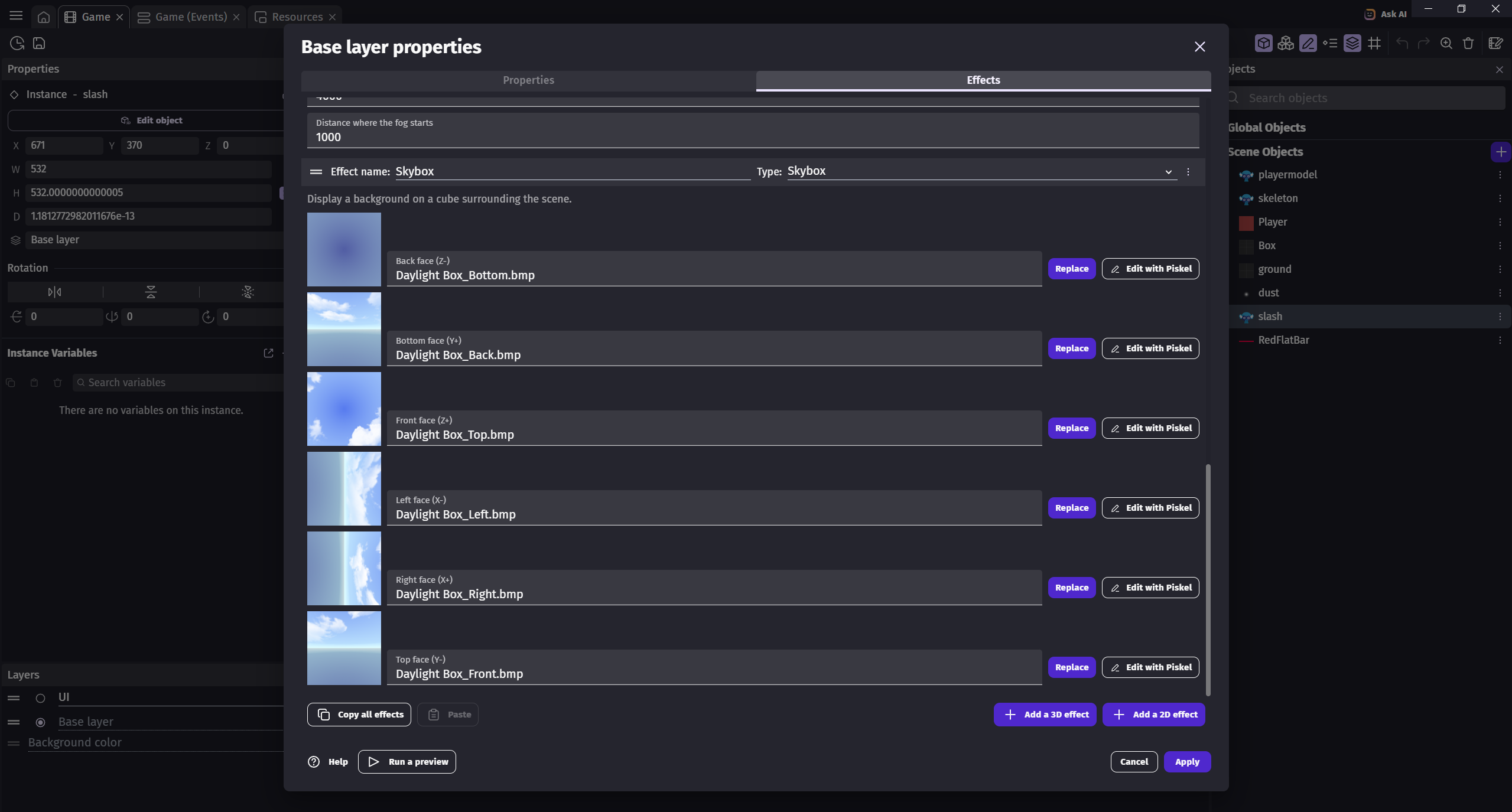 I added Skybox effect in the 3D for my game testing, I added all the skybox 6 image parts as shown in the screenshot attached below.