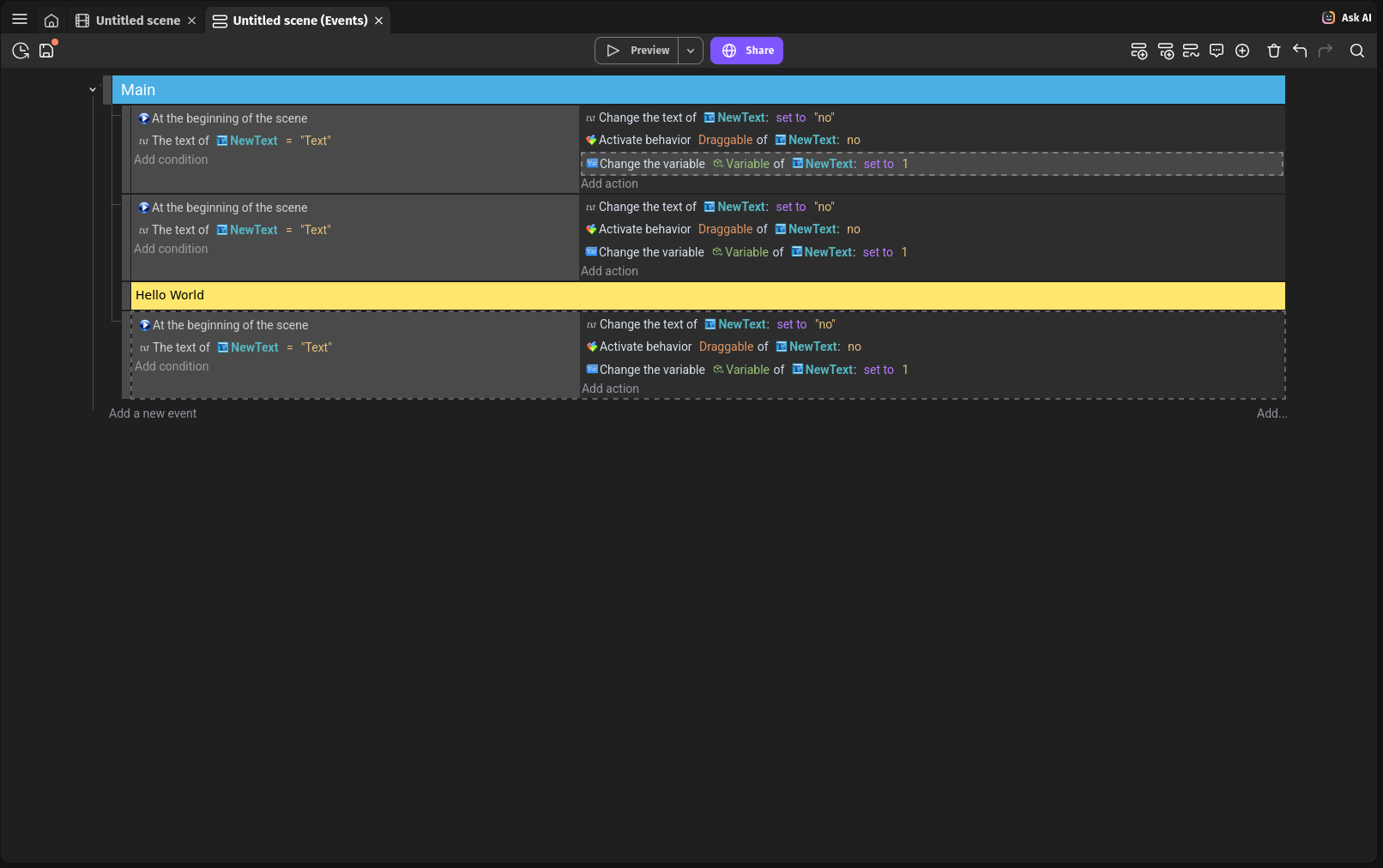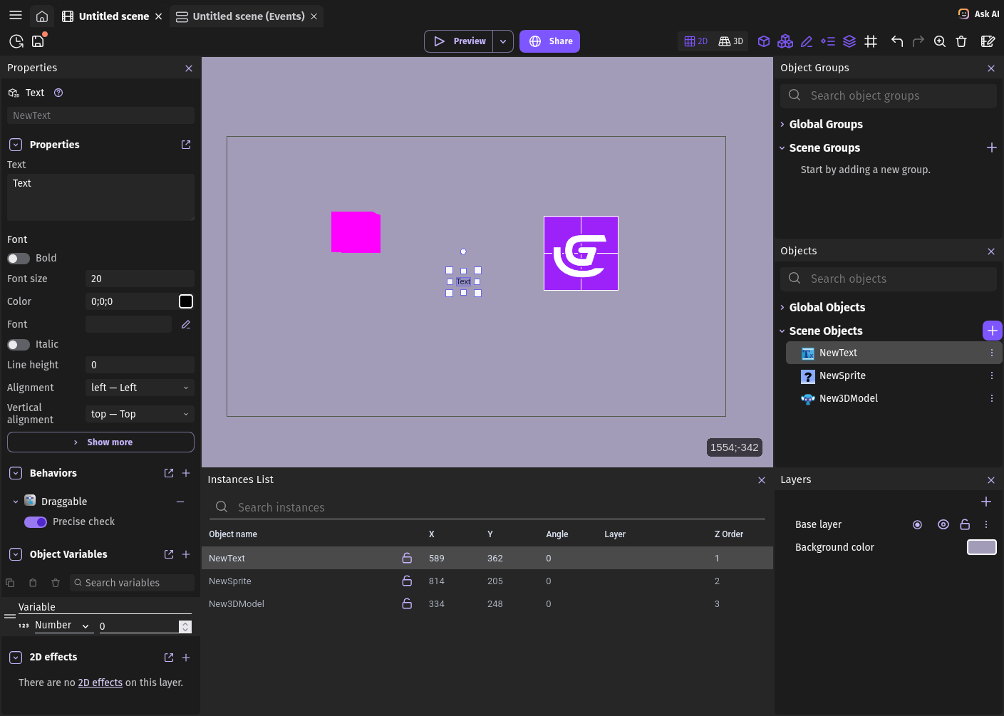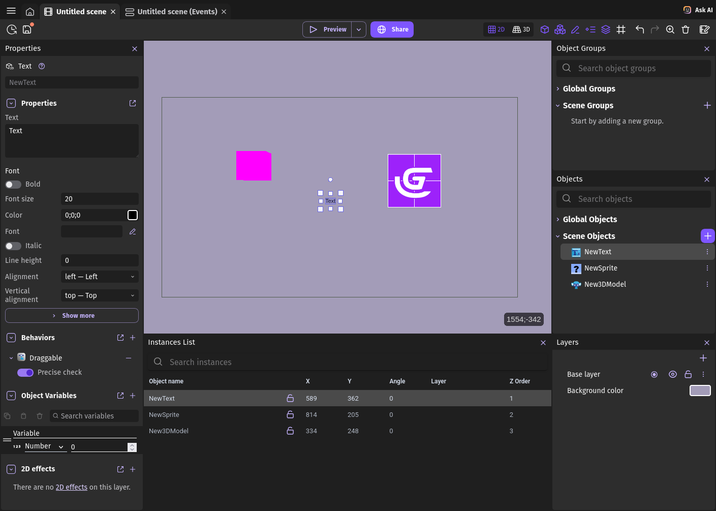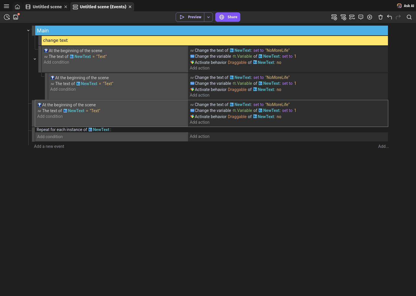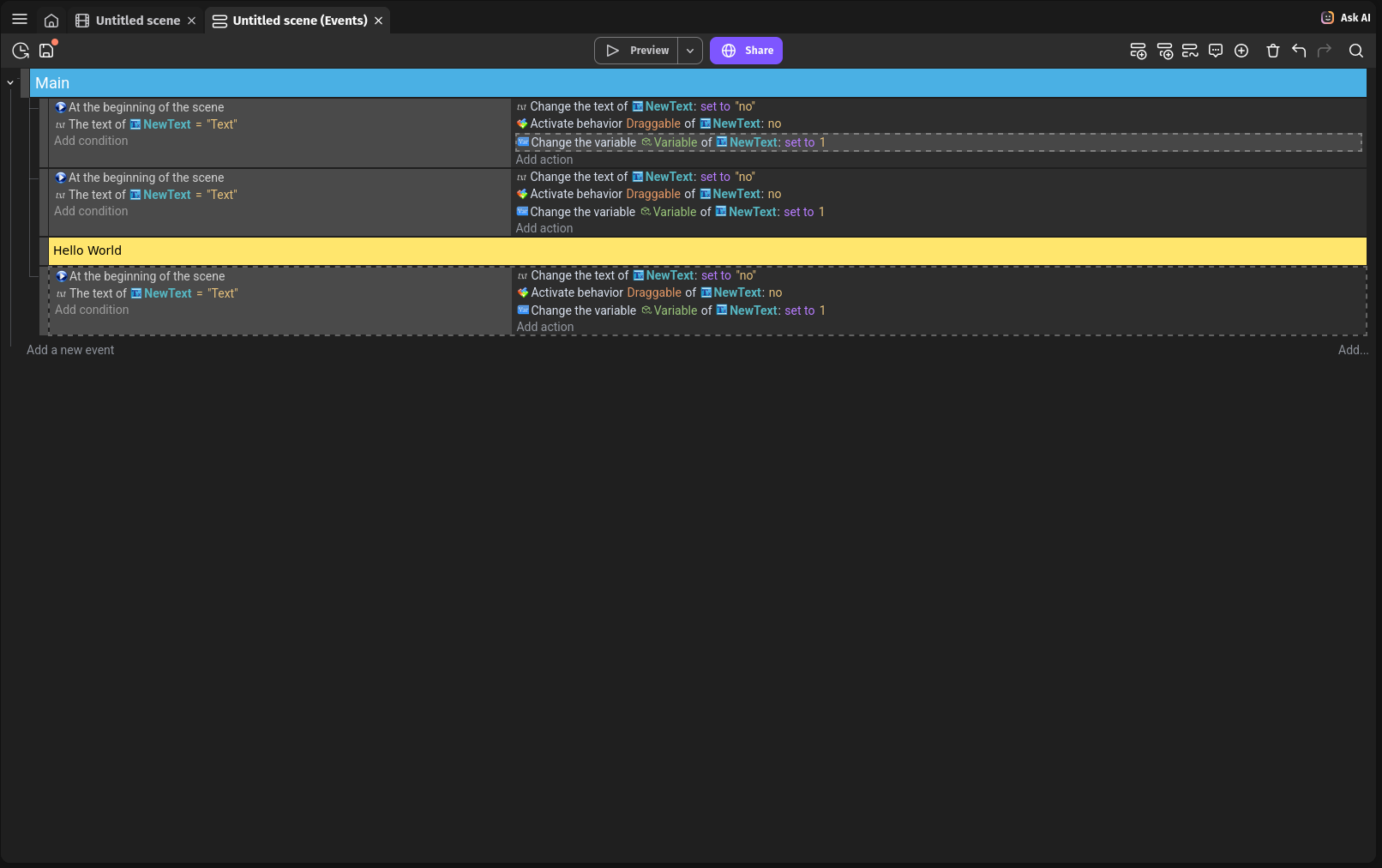 I created custom GDevelop theme called Modern Dark, but I’m not sure if it good enough to contribute it, so I want to hear opinion of community.
