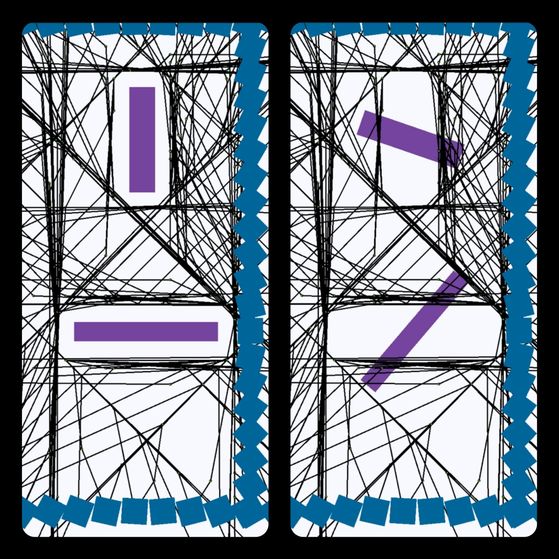 Below I have 2 obstacles. The bottom object was resized not rotated. The image on the left is perfect. The image on the right shows what happens when you rotate an obstacle. The pathfinder behavior doesn’t care. It thinks the objects aren’t rotated. It will go through the object and refuse to go where it thinks it is.