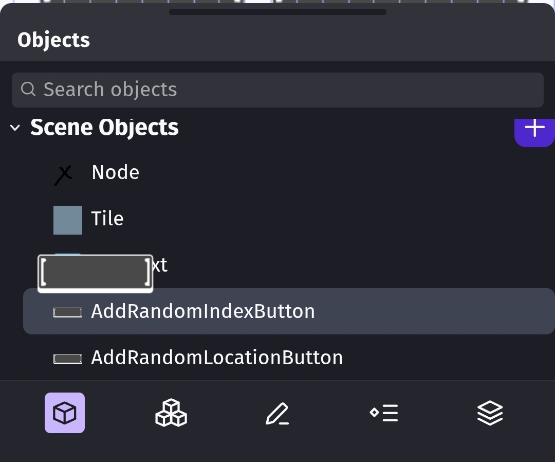 With the object window closed. You can tell that the phantom button is on top of the editor view. The icon covers the grid.