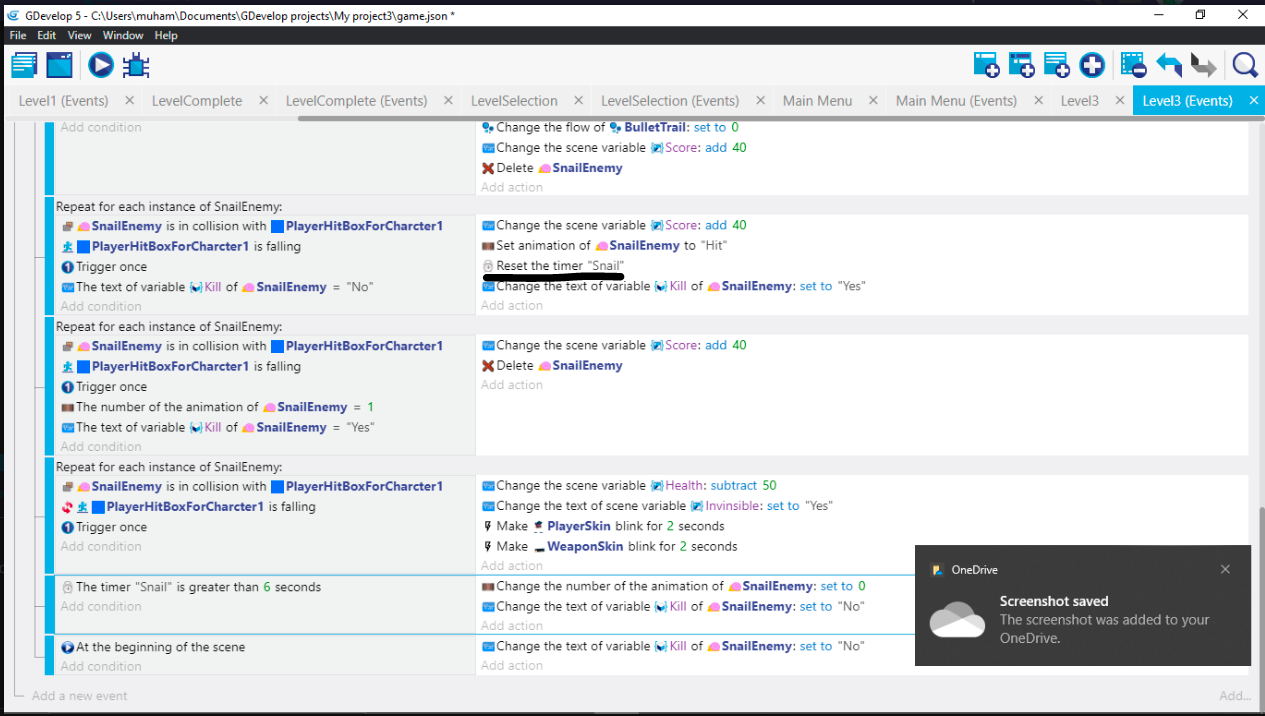 another SnailEnemy is jumped on. Timer is reset to 0