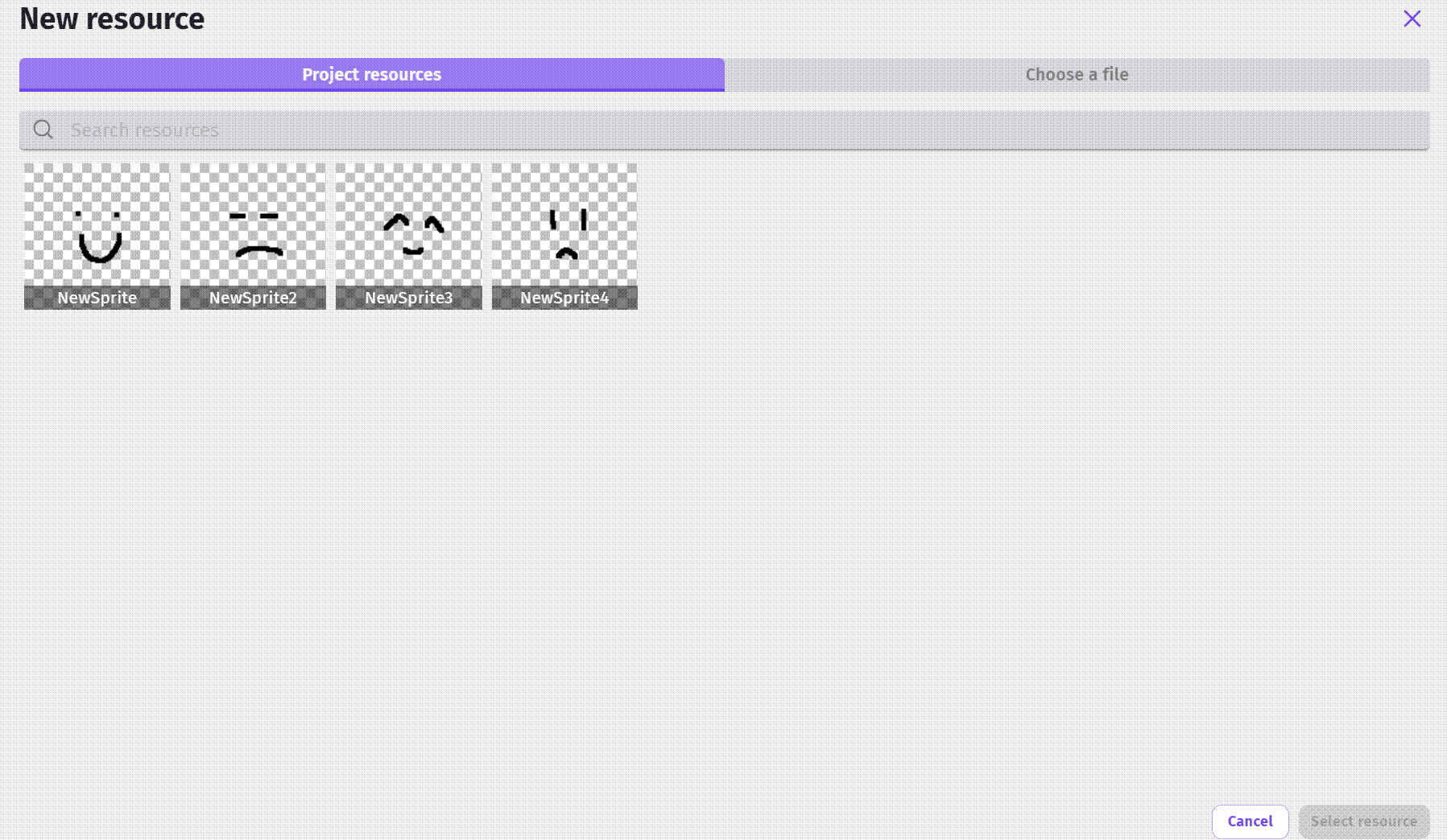 In the object editor if we select Add a sprite from project resources, we have to single click on the image and then click on Select resource. Double clicking selects the image and then de-selects it. It would be better if we could just double click to select and accept, like we can with other things.