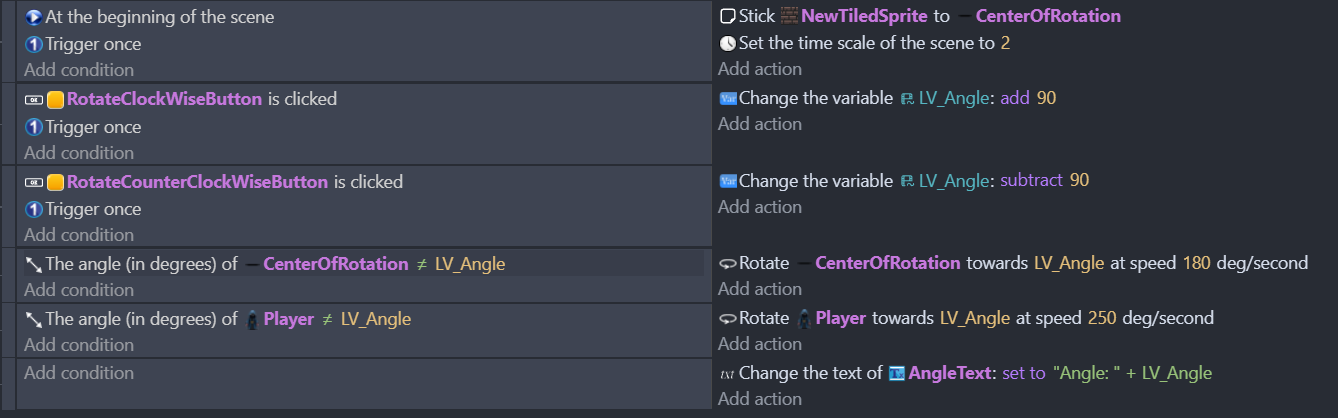 I should also mention that the “CenterOfRotation” object always has the correct angle but the Brown bars “NewTiledSprite” instances end up at the wrong angle (I inspected thru the Debugger) - so it looks like the Stick somehow fails?