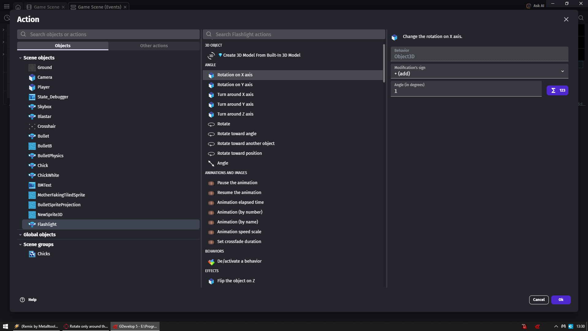 - I created a 3D Model in BlockBench. The center/pivot is in the middle. I can restrict the rotation around the X-axis: Change the rotation on X axis of seesawPlank: set to 0. But the same thing does NOT exist for the Z-axis.