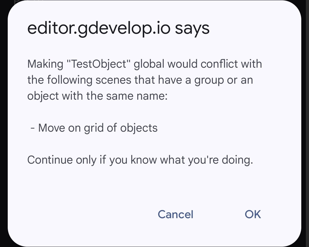 It then gives the normal warning and then only deletes the scene version in the current scene. You’re left with both scene and global objects in the other scenes.