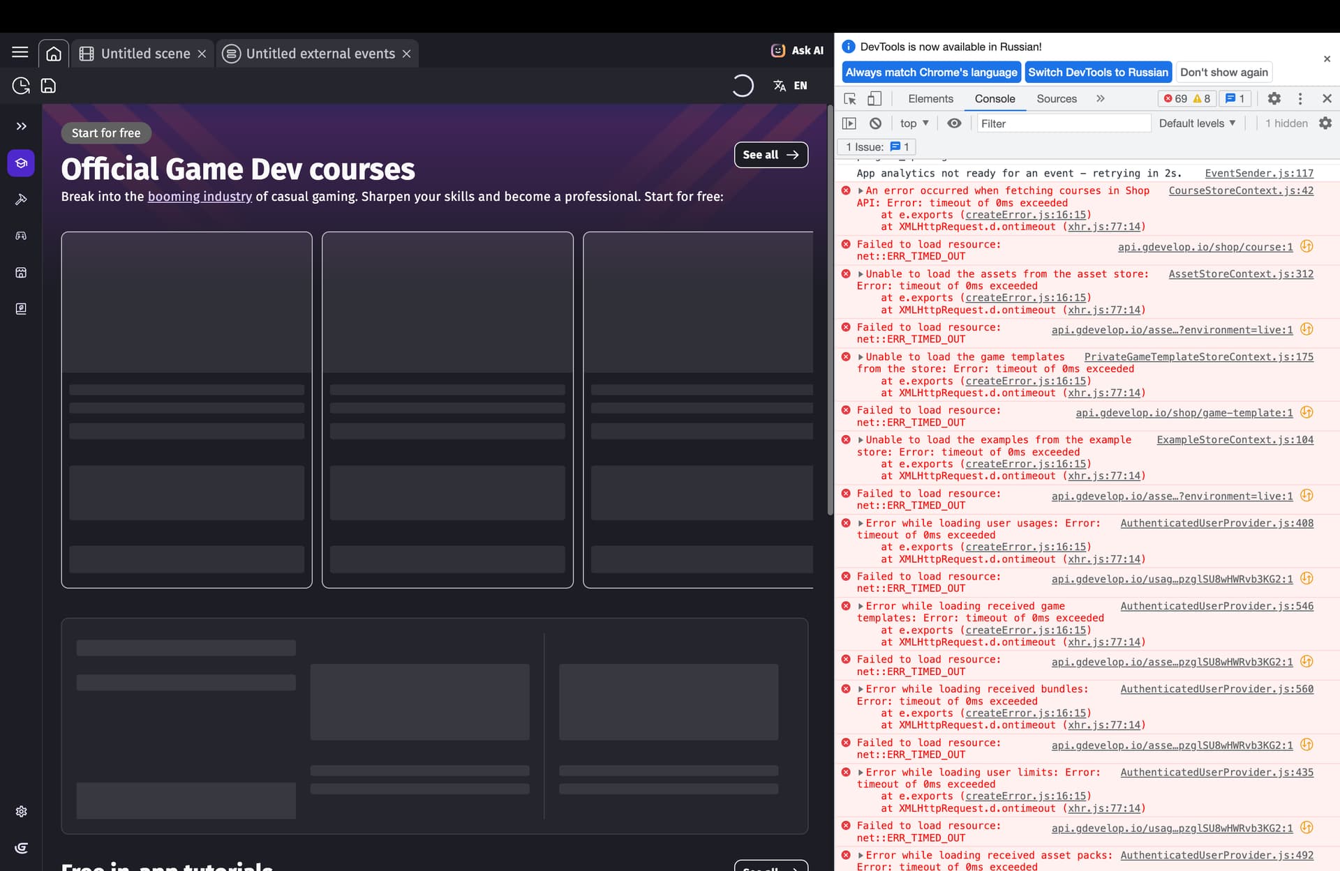 no internet requiring features work in Russia, can’t even playtest, it loads infinitely. So it doesn’t work offline, it tries to check my account when previewing the game, so if i have no connection to the server or no connection at all (offline) it doesn’t load. Can’t open any projects except the one that was already opened before the issue started.