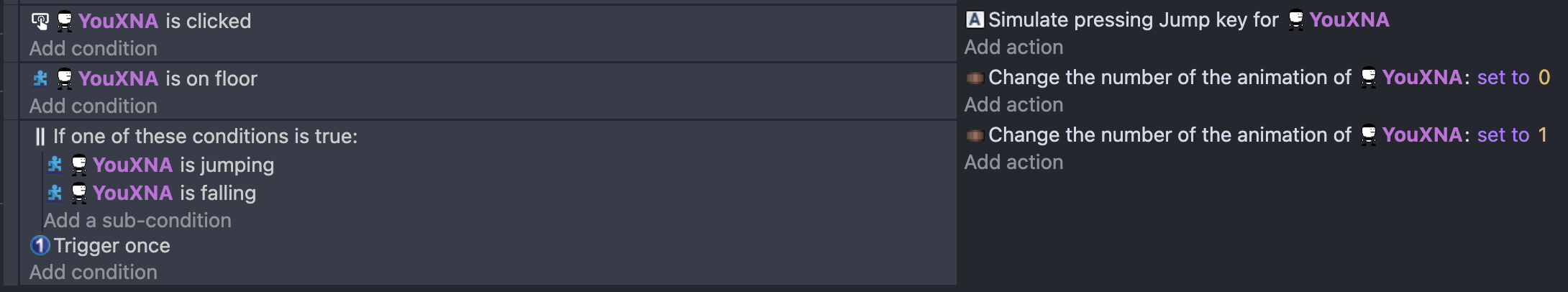 Also, instead of using the OR and Trigger Once conditions, you could invert the condition “YouXNA is on floor”.