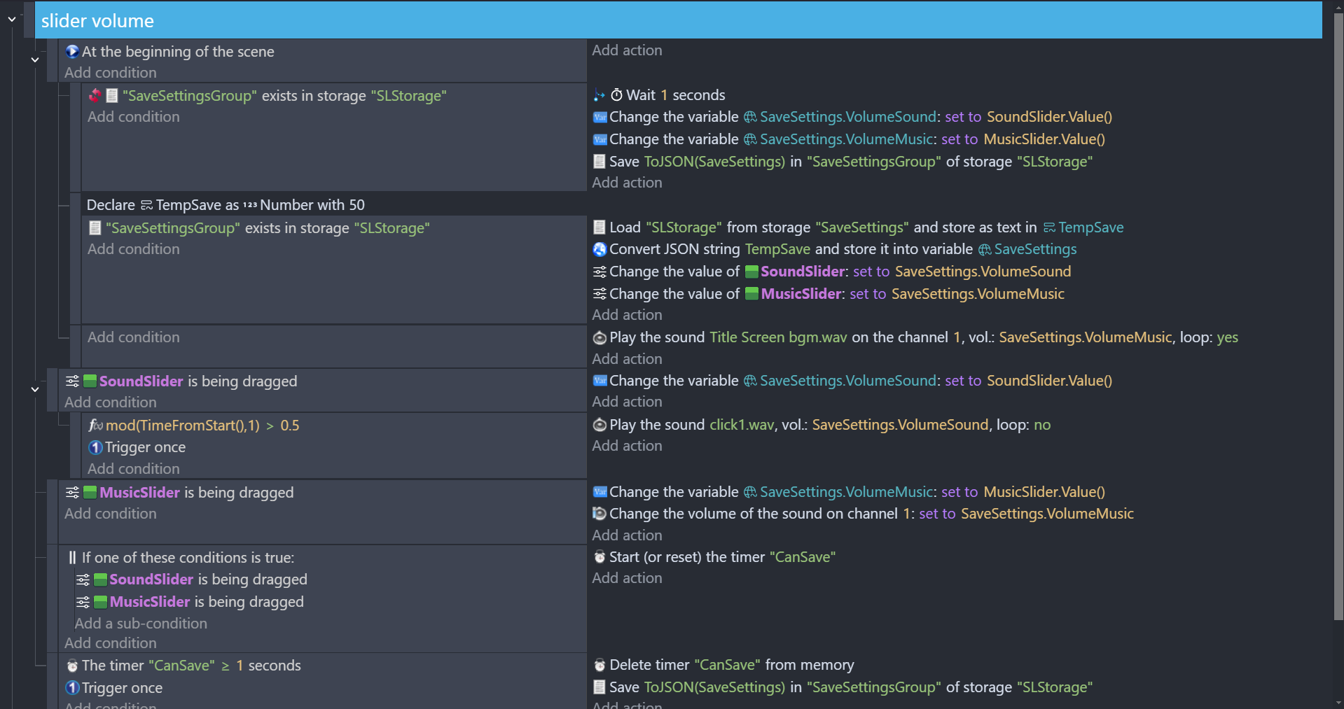 just one problem tho, I followed everything in the tutorial from the post, but the slider volumes on both sound and music seems to start at 0 when u preview it on gdevelop. the thing is, when starting the main menu scene, it should have a sound of at least 70 as volume and 50 for music. so, when the player opens the game there should alr be music playing at the bg, did i do anything wrong or is there any way to fix this? thank you!