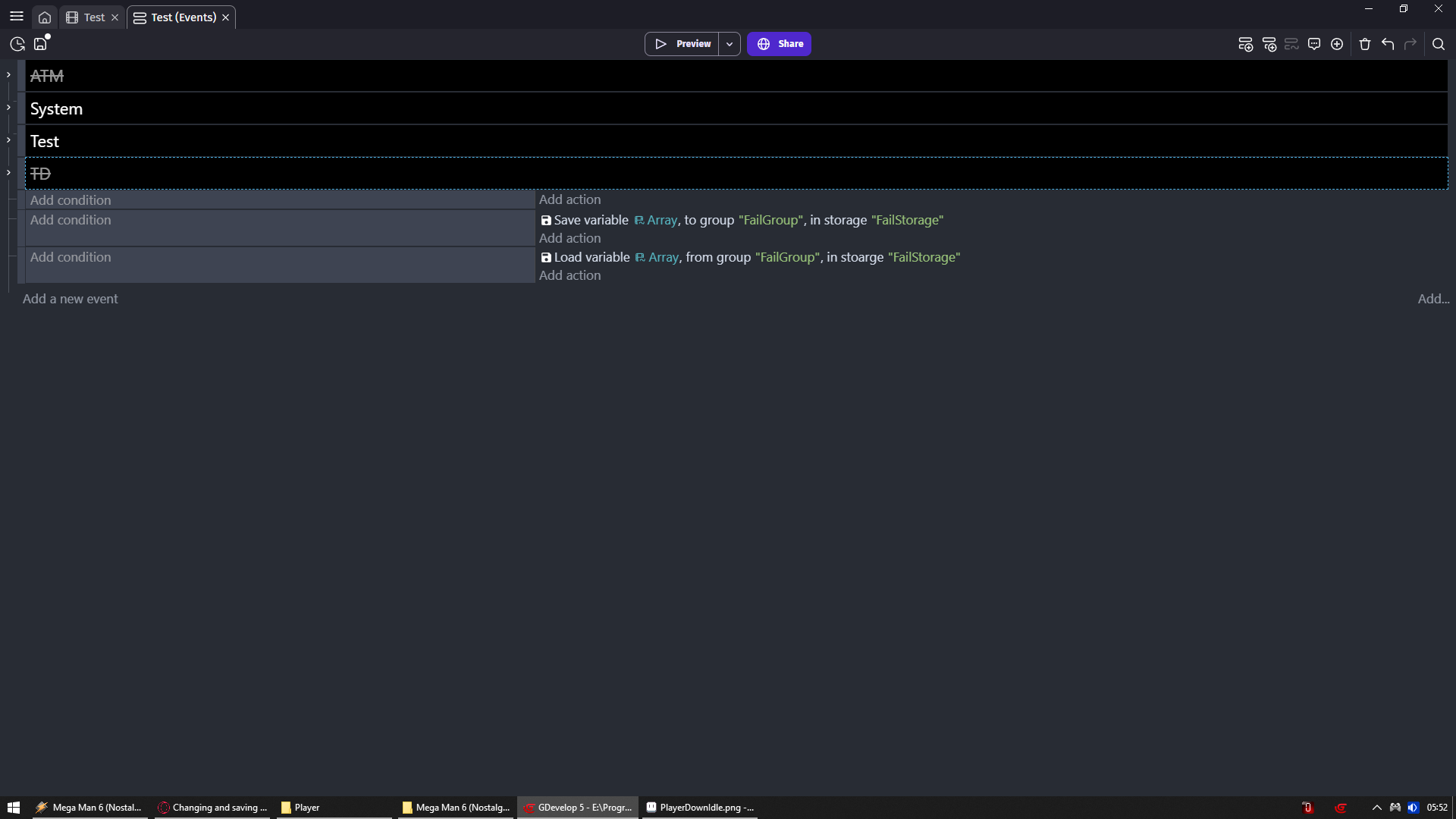 I wish the storage events were like tweens and other events where the parameters are remembered and it creates an autocomplete/dropdown list from them. There would be fewer errors.