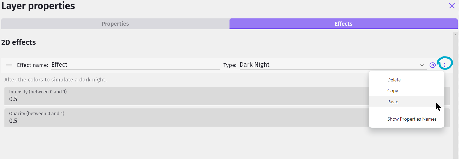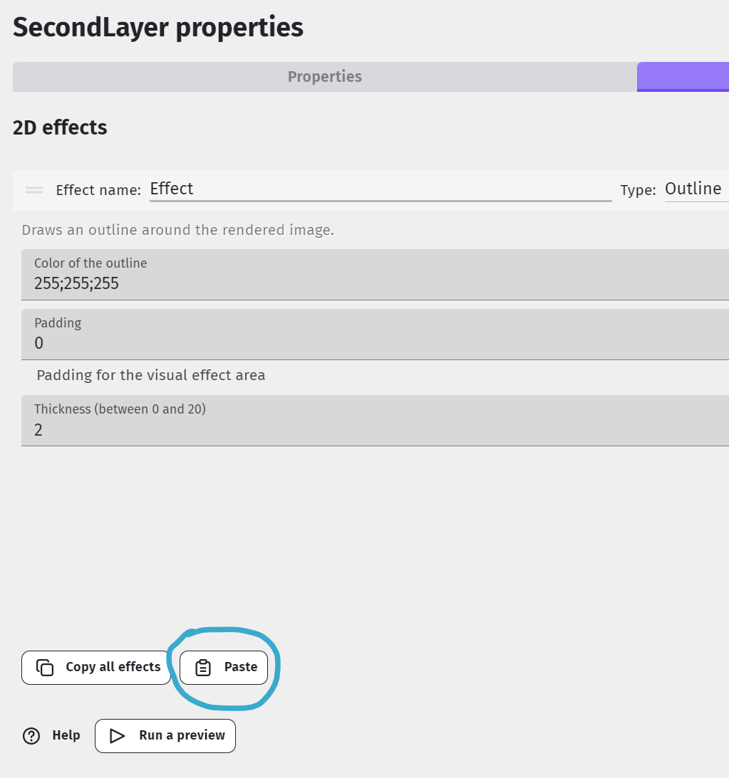 But this layer effects thing - there’s a button to paste - but it doesn’t work!