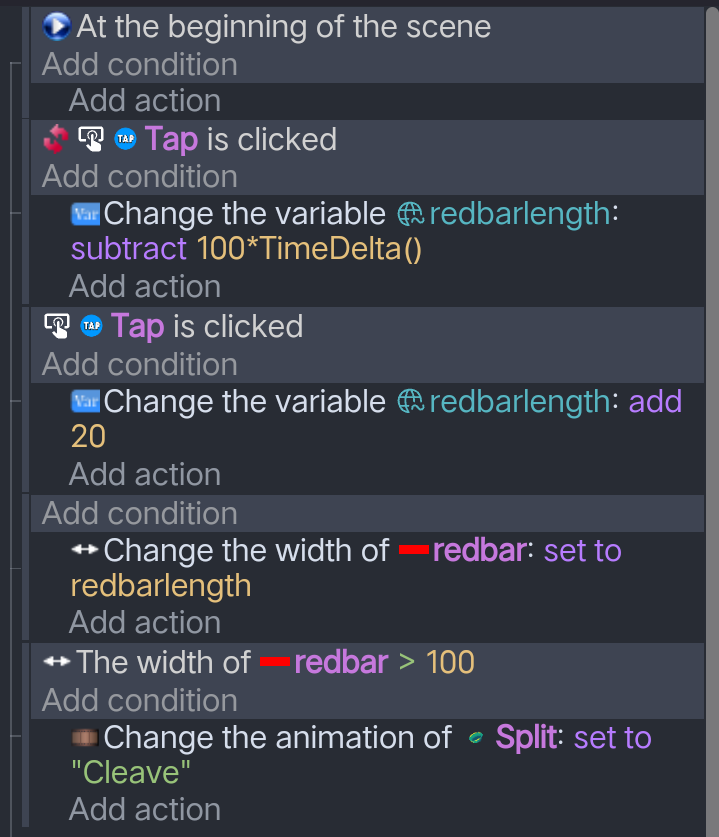 I’m a bit unsure how to explain this, so please bear with me. I’m trying to create a fast-tapping game where tapping the blue circle makes a red line extend along a bar.
