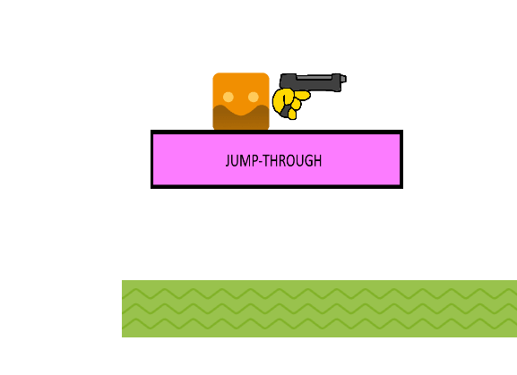 nevermind, i figured that out. just do the “ZOrder” thing, but for both player and gun and change the subject of the ZOrder thing from “Player” to “JumpTru” (or whatever one’s jump-tru platform is called)