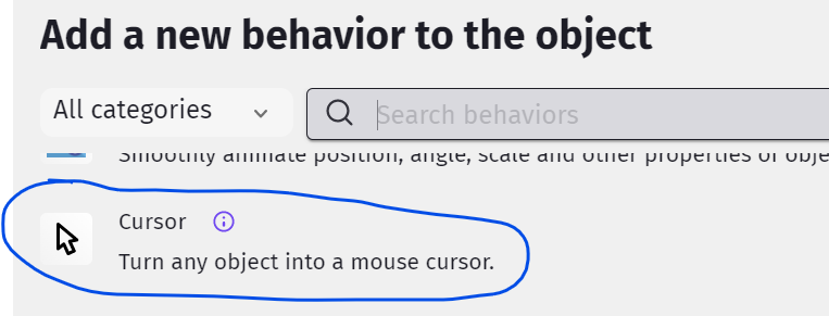 Yep sure, you make a sprite that you want to act as a cursor. Once you’ve installed the extension, then add the behavior to your cursor object. After that your cursor will automatically be your new image.