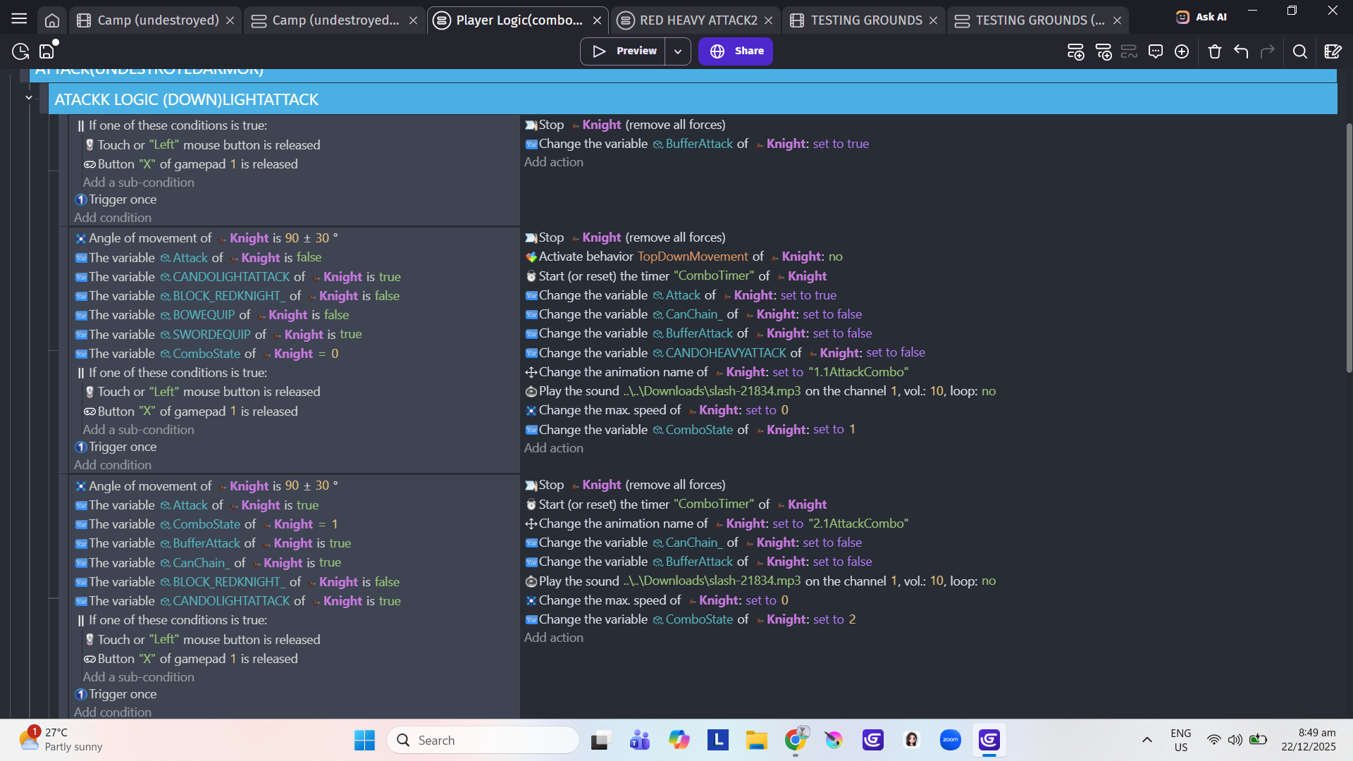 Yes. Sorry I only saw your reply now. I already solved the issue, (kinda) I completely remove everything and do it again, then I removed the dash on every attack. I plan to just put the dash everytime you hit an enemy, and not everytime you swing your sword. Sorry for the late reply