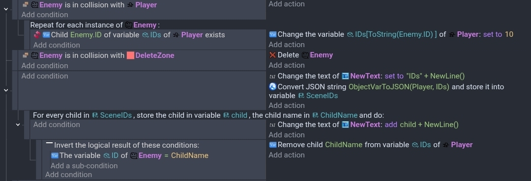 The culprit is that the child is still keeping track of the bullet that hit it, but I don’t know how to access the child’s name in the condition when the name is the UID created during runtime, and for some reason “For each child” doesn’t exist for object structures…