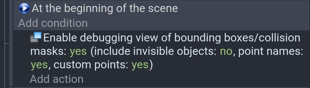 What does the collision boxes look like when you use the debug action.
