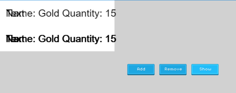 But when I try to display the list using an external layout, it doesn’t work. When I click Add once, it only shows one item. When I click Add many times, it still only shows one item at first, and when I keep clicking Show again, it only shows a maximum of two items. The second item’s text also looks very thick (overlapping?). And it also fails to show the item name.