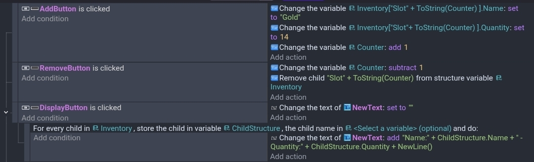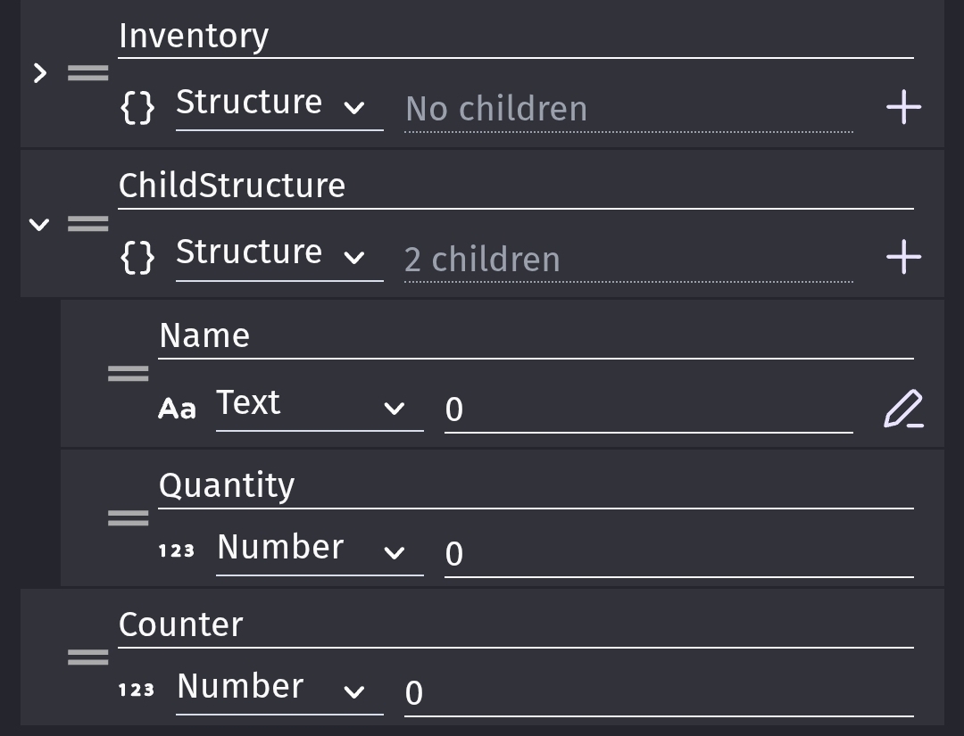 If your using a structure with a structure then you add a child structure by setting it’s variables. You can remove it by using the remove child action.