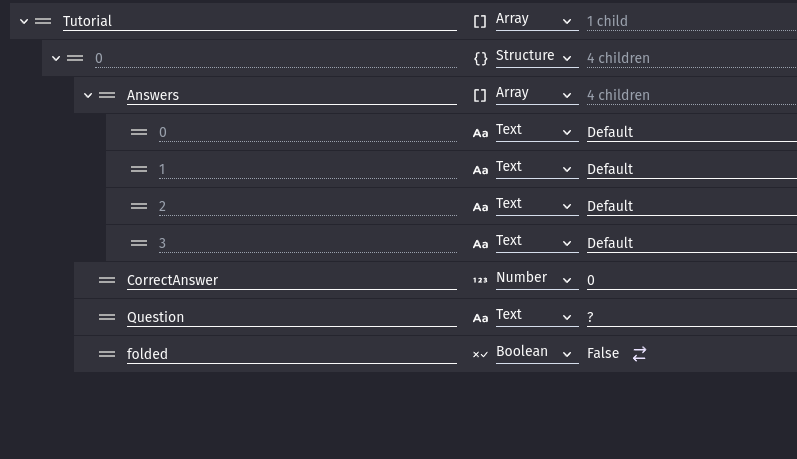 I’m making a game with trivia elements so I’d be editing multiple variables for things such as the questions and answers. I already have many of the levels put into excel sheets for when I was using Unreal like this one: TutorialDataTableOld - Google Sheets