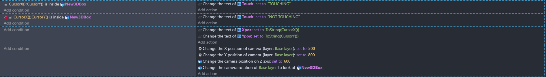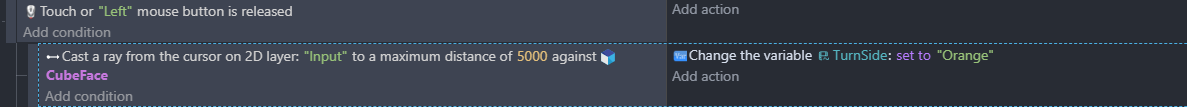 I have created a RubiksCube and would like to be able to interact with it by touch/mouse (QB | Play on gd.games). I tried to use the Point inside object using the CursorX() and Y() as condition. But this does not seem to account for the Z-Axis. As i move the camera around the cube (as a gimbal) the true position relative to the mouse cursor of the objects changes. Raycast also only takes in account X and Y. I do not understand how I could implement cubelet selection with the mouse at this point and searching google got me confused because the old RayCast extension keeps popping up which is not in use anymore ofcourse. I would like to be able to rotate the cube by just interacting with it directly instead of using buttons/keyboard. Any help is greatly appreciated. Thank you.