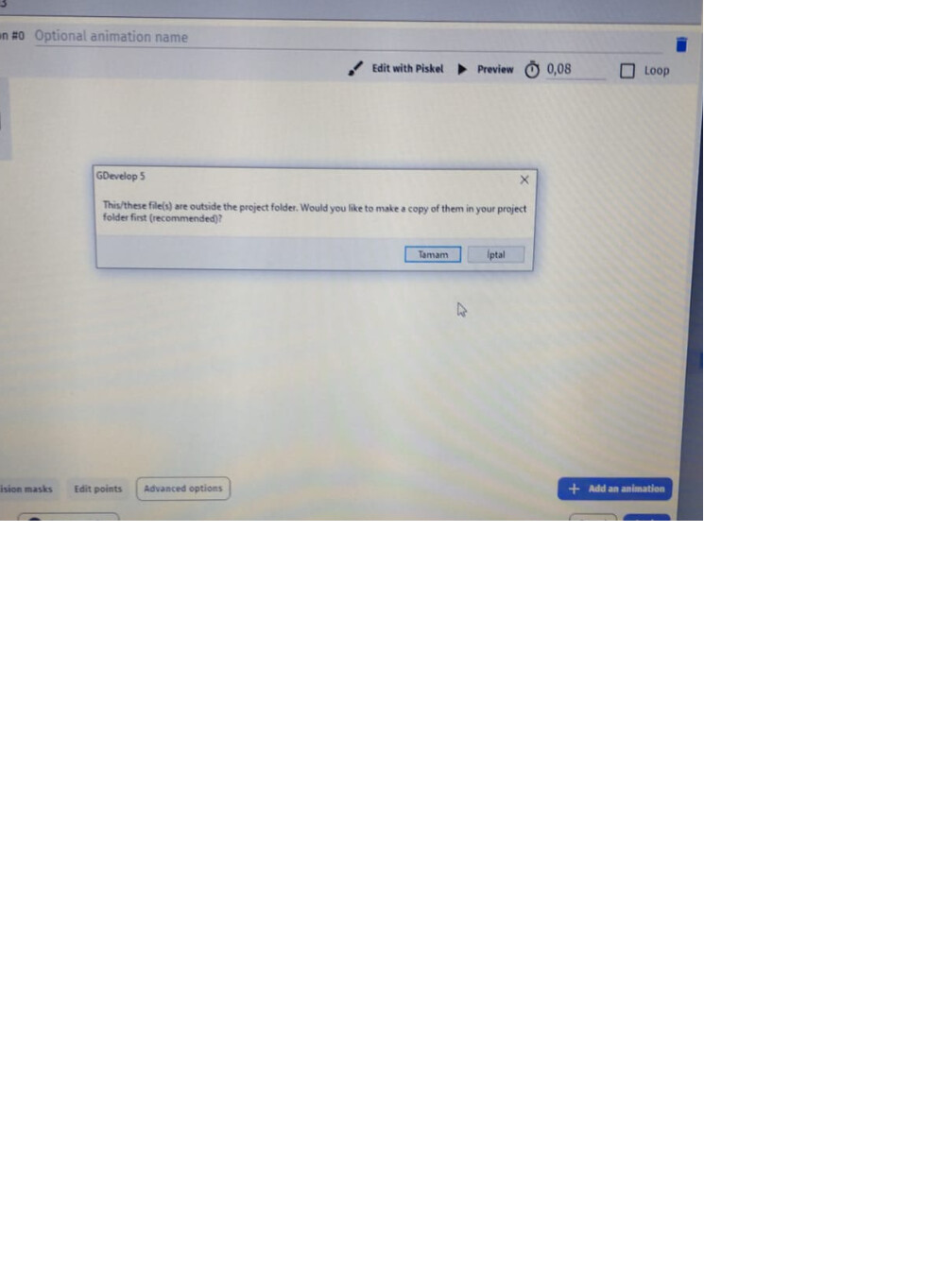 when we try to add a png from another file, it was asking “do you want to copy this png to this file?” we were saying yes but when we say yes it wasn’t copying properly. than we tried to no dont copy the file. it start to the pngs normally.