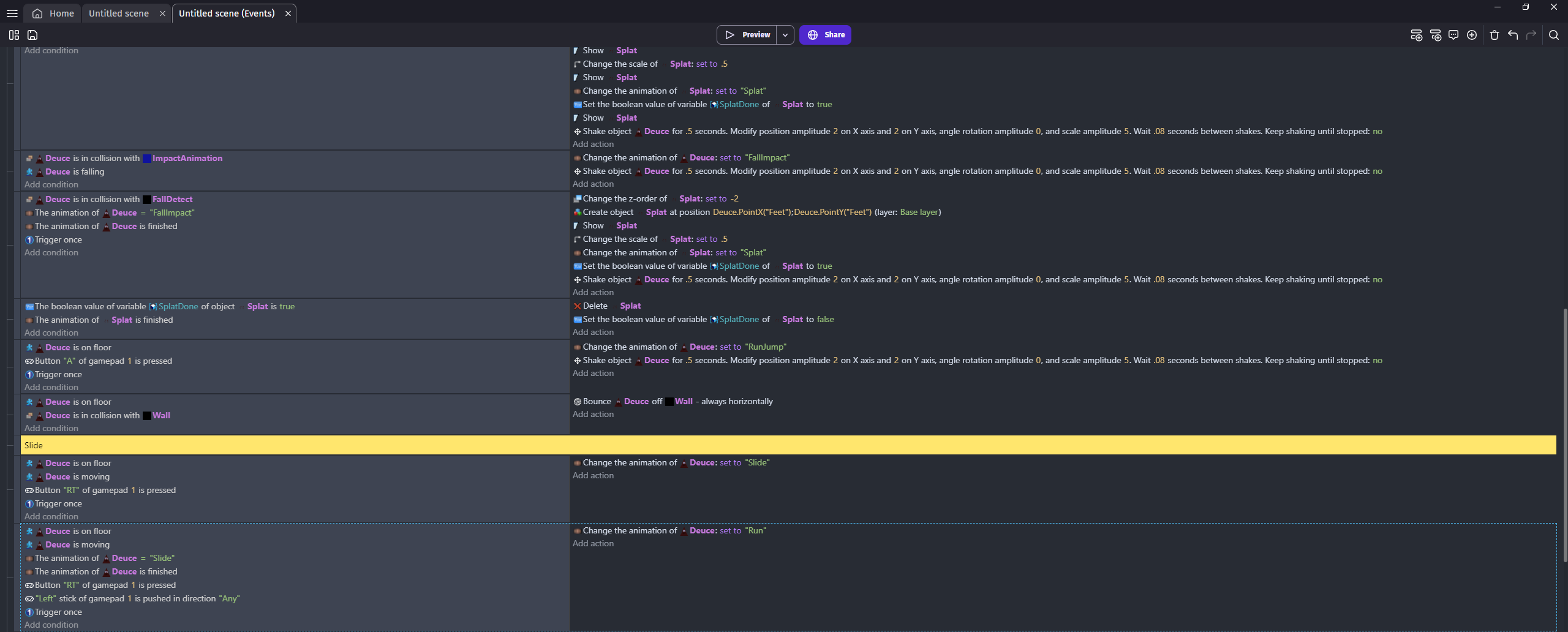 I’d also add a condition to the last event that checks that the animation name is “Slide”.