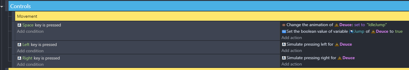 Actions: Change animation to jump animation.