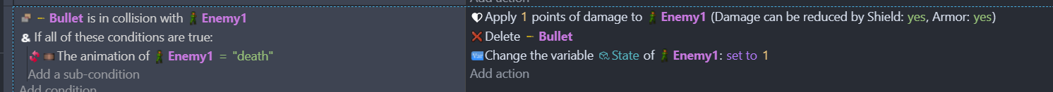 In those 3 states (idle, run and attack) you’d check if the enemy was hit by a bullet.