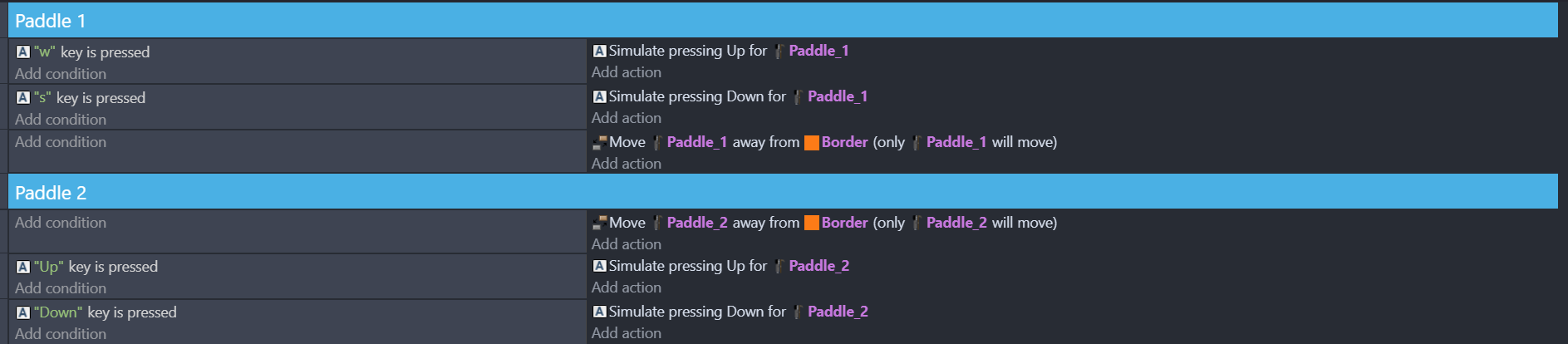The problem I’m having is that every time I move one of the paddles, the other one moves at the same time as well. The paddles have a top-down movement behavior by the way. Is it because I duplicated the paddles, or is there way to make them stop moving at the same time?