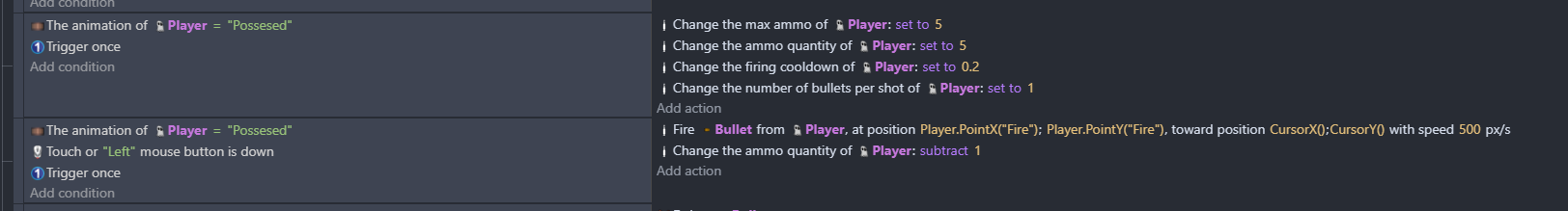 You could try using a boolean variable ācanfireā and set it to true when button released. If it was a key press - you could use ājust pressedā and there was a discussion last month about the need for a similar thing with the mouse button. See below i added a scenetimer too - but you can probably just use the parameters in fire bullet - iāve not used fire bullet b4
