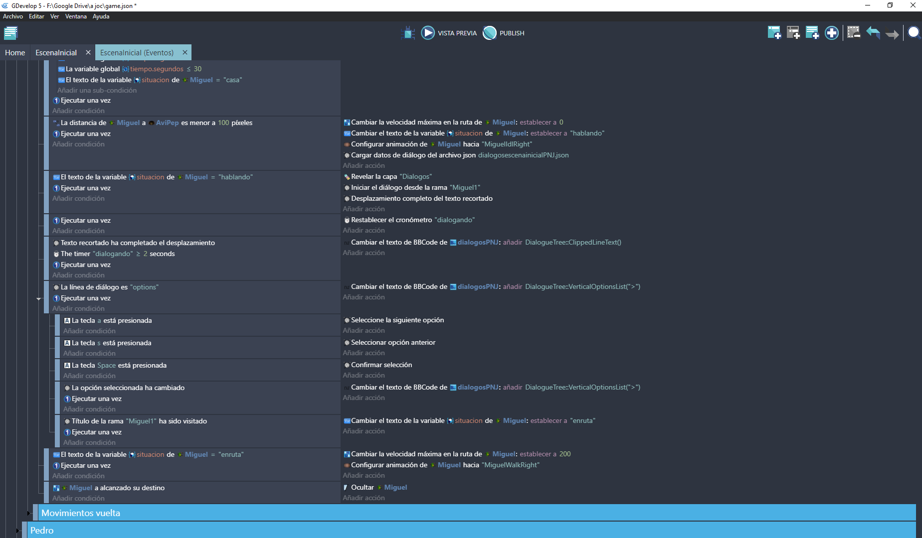 The dialog works, it reaches the first options, what I have wrong, for sure, are the events, I don’t quite see the logic why it doesn’t work for me.