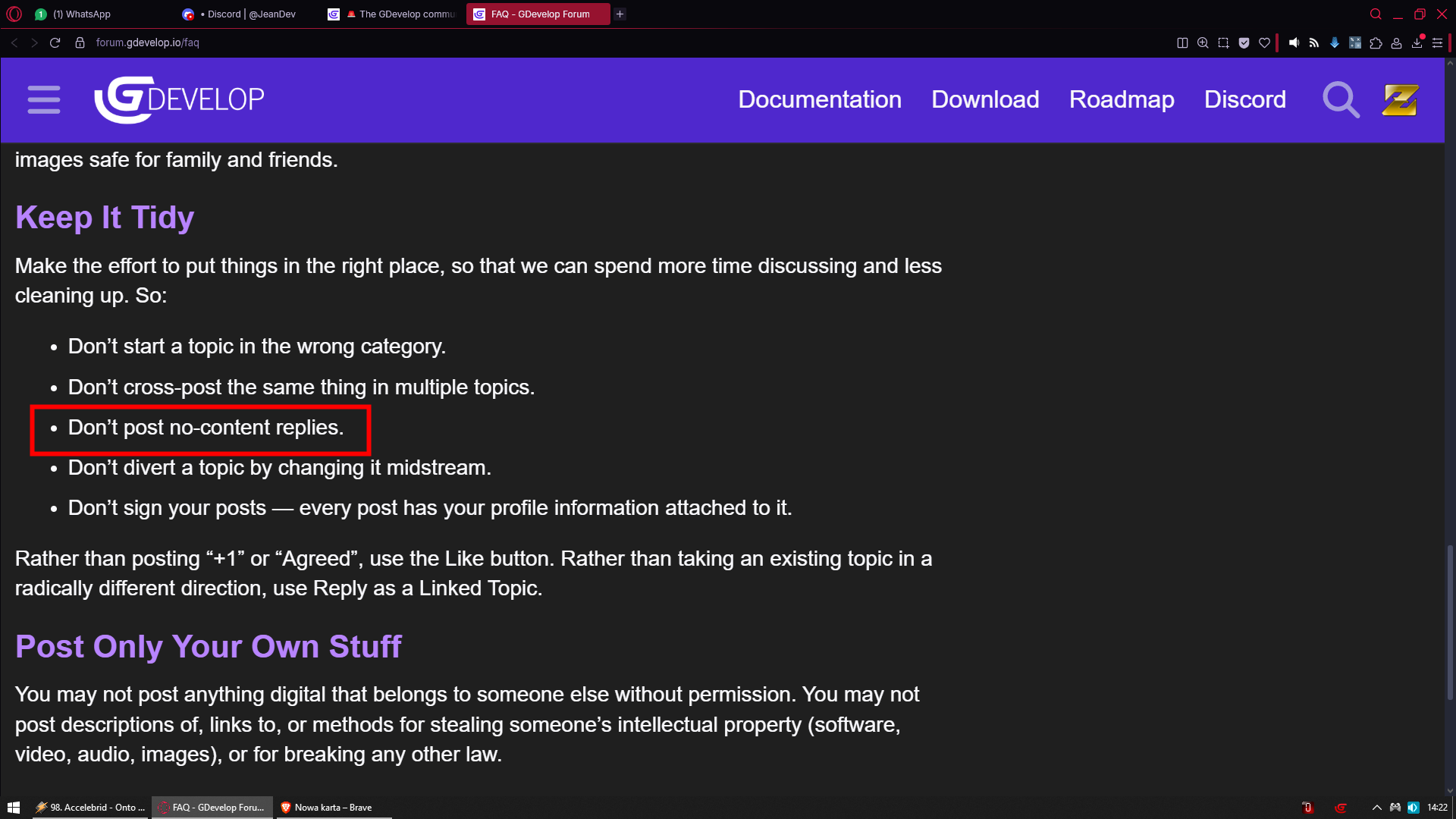A moderator shouldnât just manage the forum; in my opinion, they should also have enough experience with GDevelop to calm down any disputes that may arise from contrasting opinions about development.