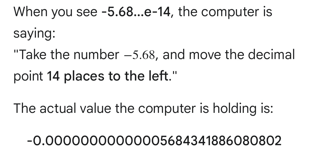 It turns out the number I’m getting is basically 0. It’s the whole e-14 at the end. That’s just a rounding error and insignificant.