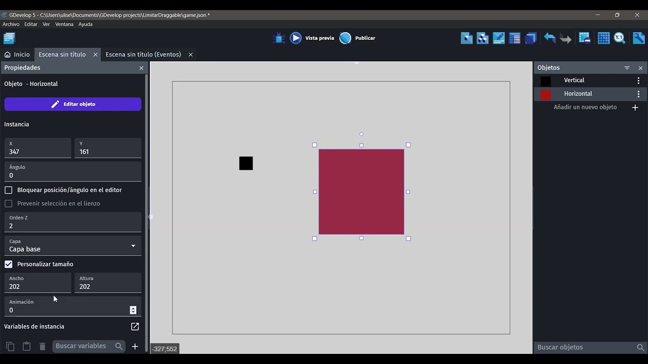LimitDragAndDropto any object. - 2 - In your events add one of the two available actions.