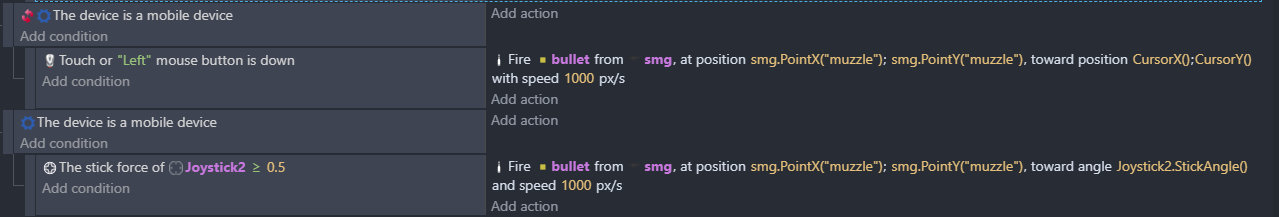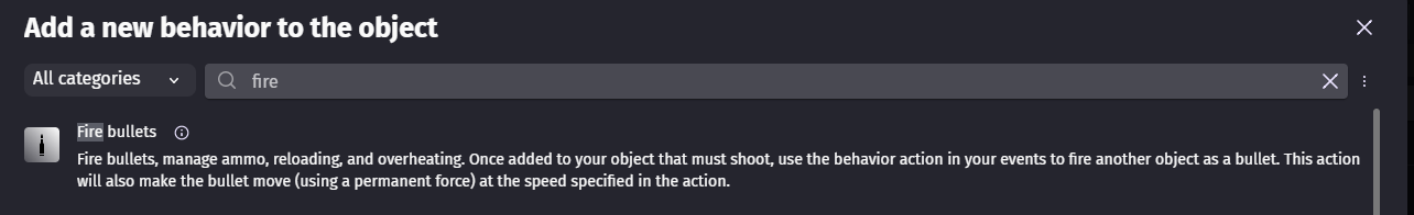 And then in the event sheets, when left mouse down, fire bullet (the object i want to use as a bullet from the gun)