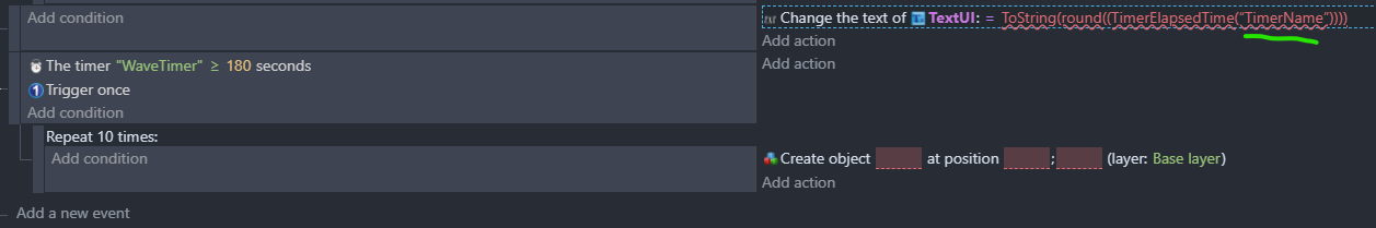 *Note that you need to change the text between the " " symbol to match with your timer name on the green underline above.