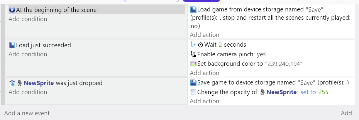 Thanks for your help Zero. I have already tried using waits but have now tried again. So, I just found something interesting. A wait action or a timer didn’t work if I had it in the beginning of scene event if the Load action was also there. This did nothing, the tinting of the background didn’t happen.
