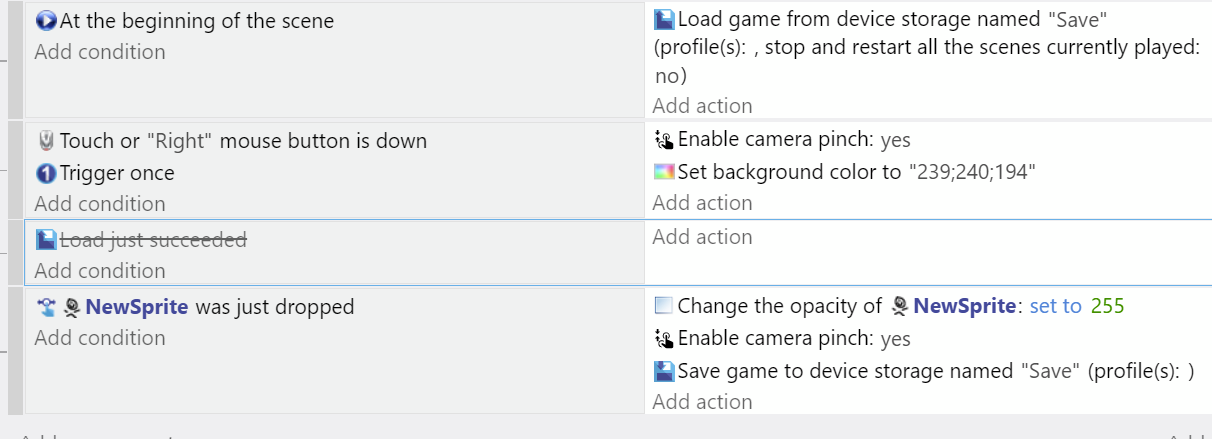 I’ve been using the Pinch gesture extension for zooming the camera with pinching. But I can’t get it to work when I use the Save state action - Load game from device storage. I went through the pinch extension and successfully changed any declared variables to extension scene variables but it still didn’t work when loading was on. Does anyone know anything else I could try? I’m not using Pinch as a behavior, just using the function part of it.